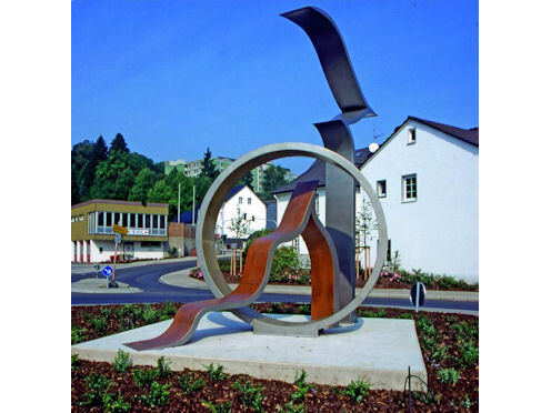 Das Werk von Barbara Szüts entstand im Jahr 1999 und befindet sich auf dem Kreisverkehr an der Kölner Straße in Attendorn. Die Künstlerin, die für ihre Arbeiten an der Schnittstelle von Raum, Körper und digitaler Formgebung bekannt ist, schuf hier eine Arbeit, die sich harmonisch in das Stadtbild einfügt und zugleich künstlerische Akzente im öffentlichen Raum setzt.