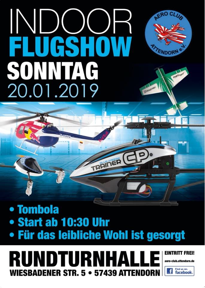 Der Aero Club Attendorn lädt am Sonntag, 20. Januar, 2019 zur ,,Indoor Flugshow 2019“ in die Rundturnhalle ein. Los geht es ab 10.30 Uhr.