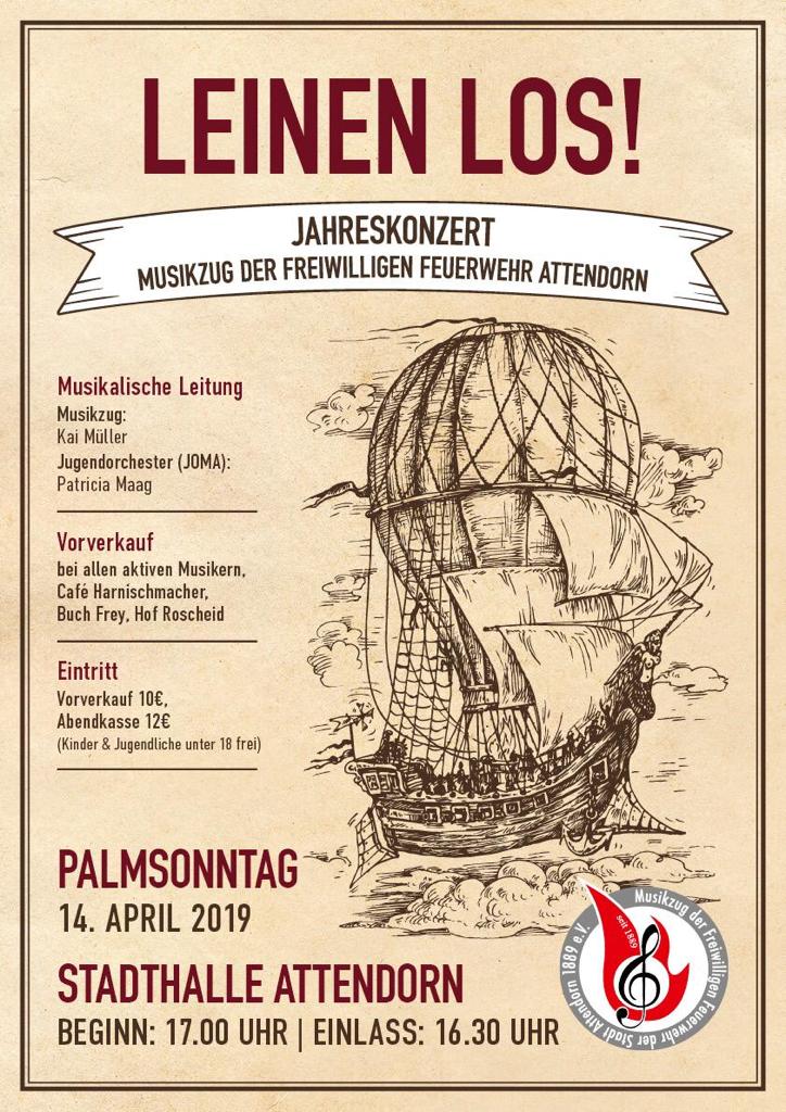"Leinen los!" heißt es am 14. April 2019 zum Jahreskonzert des Musikzuges der Freiwilligen Feuerwehr der Hansestadt Attendorn.