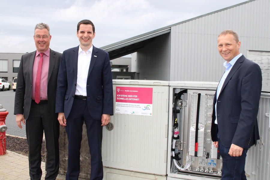Entsprechend große Freude herrschte bei den Bürgermeistern Christian Pospischil (Attendorn), Dietmar Heß (Finnentrop) und Peter Weber (Olpe) sowie dem Beigeordneten der Stadt Lennestadt Karsten Schürheck, als sie kürzlich gemeinsam mit Ralf Engstfeld von der Deutschen Telekom und dem Breitbandkoordinator des Kreises Olpe Martin Dornseifer die neuen Kabelverzweiger abnehmen konnten. Im Rahmen des Breitbandausbaus wurden von der Deutschen Telekom als Netzbetreiber für diese Teilbereiche bisher rund 90 km neue Glasfaserleitungen verlegt und 42 Multifunktionsgehäuse sowie 16 Glasfasernetzverteiler installiert.