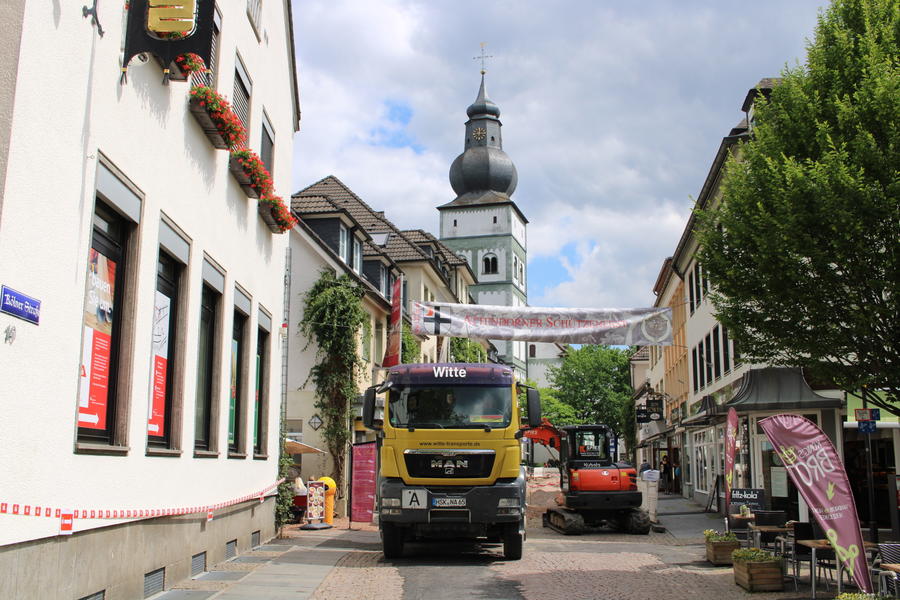 In den letzten Wochen wurden in der Fußgängerzone Kölner Straße Arbeiten am Kanal und den Grundstücksanschlüssen ausgeführt. Nun erfolgt die Umgestaltung zur barrierefreien Straße.