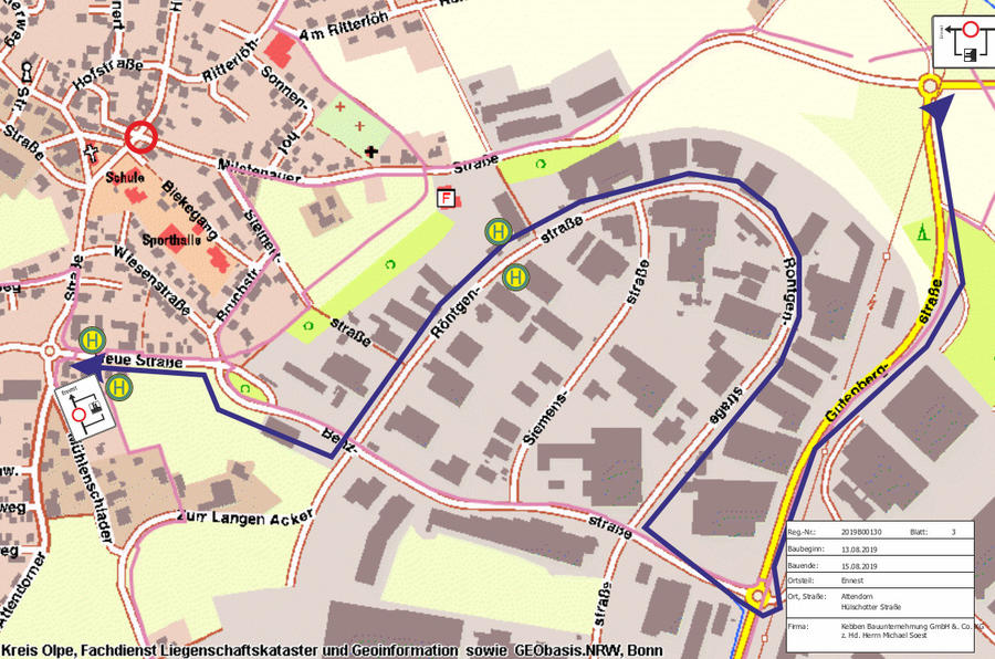 Vom 13. bis voraussichtlich zum 15. August 2019 kommt es aufgrund einer Baustelle in Ennest zu Verkehrsbehinderungen.