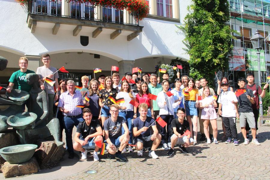 13 junge Chinesinnen und Chinesen der Thomas Foreign Language School aus Qingdao haben zusammen mit 13 Schülerinnen und Schülern des Gymnasiums Maria Königin aus Lennestadt das Attendorner Rathaus besucht, wo sie vom Stellvertretenden Bürgermeister Horst Peter Jagusch begrüßt wurden.