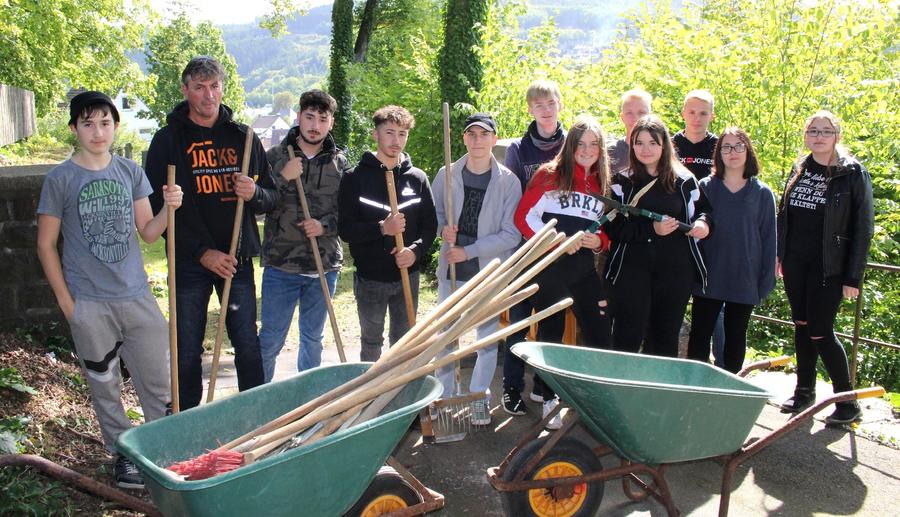 Erneut zeigten Schülerinnen und Schüler der Hanseschule großen Einsatz bei der Pflege des Jüdischen Friedhofs in Attendorn.
