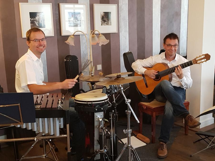Gitarre und Percussion – diese Zusammenstellung wird dem inzwischen äußerst beliebten musikalischen Nachmittag im Café Harnischmacher wieder eine ganz besondere Note verleihen.