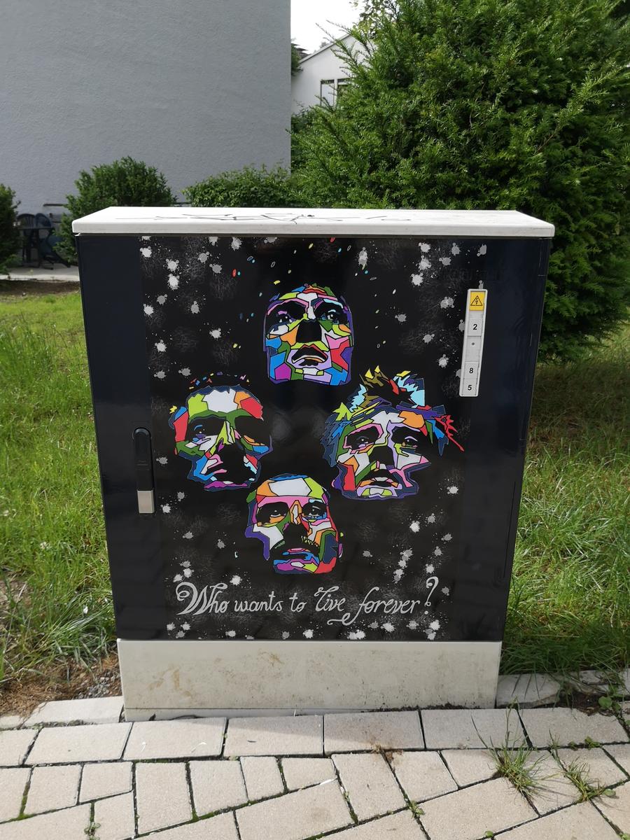 Dabei wurde bereits vor zwei Monaten der erste Verteilerkasten im Schwalbenohl an der Ecke Soester Straße/Lübecker Straße mit einem eigens dafür entworfenen Motiv der bekannten Band "Queen" versehen. Verantwortlich für die künstlerische Umsetzung ist Marta Primorac. Die junge Attendornerin entwarf zudem das Motiv der Atta-Höhle, die nun auf dem Kasten im Bereich des Kreisverkehrs am Grafweg zu bewundern ist.