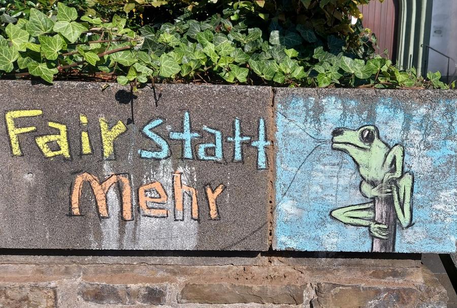 An der Straßen-Mal-Aktion des AK Fairer Handel, die am 12. September 2020 stattfand, beteiligte sich auch der Künstler Sami Gebremariam.