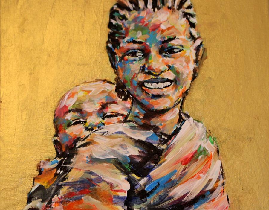 In seinen Gemälden spielen Symbole und kleine grafische Objekte aus der Ost-Afrikanischen Kultur immer wieder eine entscheidende Rolle.