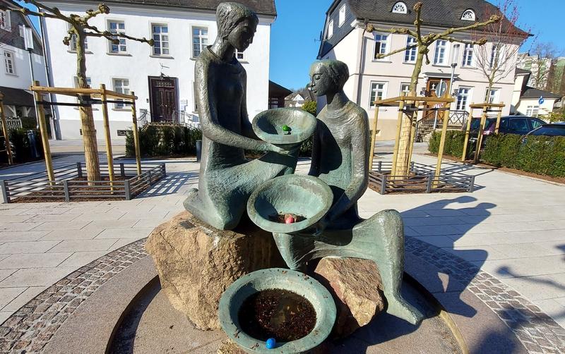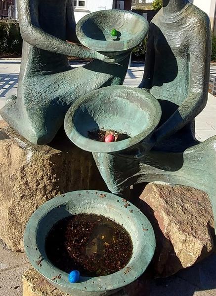 Der Brunnen auf dem neugestalteten Rathausplatz hat eine tolle Zusatzfunktion erhalten. Kurzentschlossene können dort auf den letzten Drücker noch Ostereier färben.