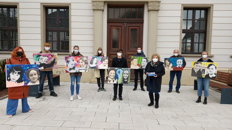 Bei dem Projekt erinnerten acht junge Attendornerinnen und Attendorner an jüdische Kinder ihrer Heimatstadt, die in der Zeit des Nationalsozialismus vertrieben wurden. Sie gestalteten eine virtuelle Patenschaft in Fotocollage und Malerei. "Vor einem gemalten Bild stehen sich unsere Gesichter gegenüber und überspringen die Geschichte. Wir erinnern uns an euch. Wir sehen eure Fotos und stellen uns vor, dass wir hätten Freunde werden können", erläutert Marlies Backhaus die Grundidee dieses eindrucksvollen Projektes.