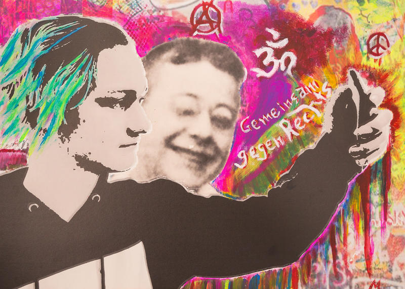 Max Lubowietzki entschied sich zu einer Patenschaft mit Gerhard Stern: "Er kam mir auf den ersten Blick sympathisch vor. Er war wohl so wie ich ein humorvoller Mensch und scheint vom Typ her zu mir zu passen: neugierig und offen. Als Zeichen der Verbundenheit habe ich am PC eine Selfie-Collage montiert. Der vielfarbige Graffiti-Hintergrund passt zu meiner – vielleicht auch seiner – bunten Lebenseinstellung."