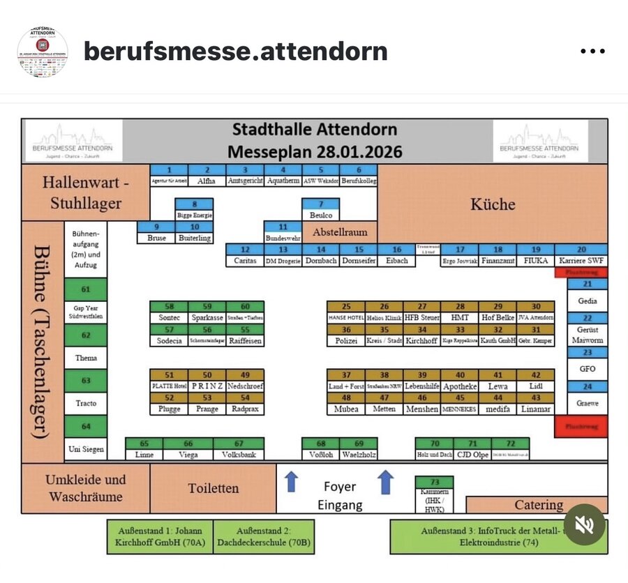 Mit ihrem breiten Angebot und der engen Verzahnung zwischen Schulen, Betrieben und Besucherinnen und Besuchern hat sich die Berufsmesse Attendorn als fester Bestandteil der regionalen Berufsorientierung etabliert - und verspricht auch in ihrer vierten Ausgabe einen informativen und praxisnahen Messetag.