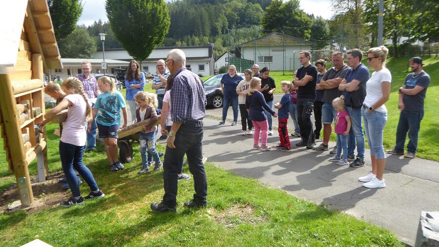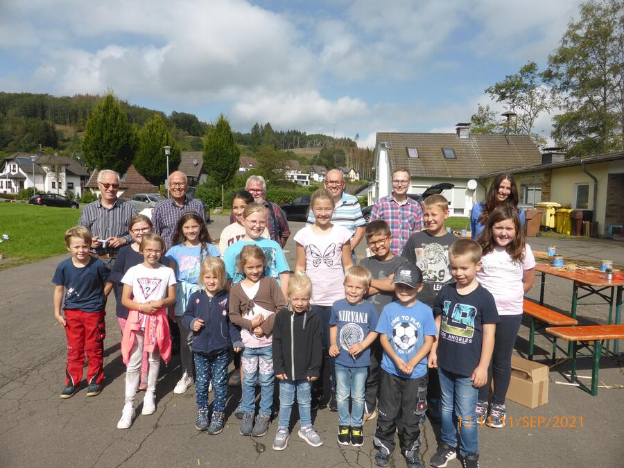 Mit fachlicher Unterstützung durch Frau Chiara Sopart und Herrn Patrick Dippler vom Tiefbauamt, Sachgebiet Klima, Umwelt, Mobilität, der Hansestadt Attendorn wurde hierzu ein Workshop mit Kindern durchgeführt. Insgesamt 16 Kinder zwischen 5 und 10 Jahren waren der Einladung gefolgt um am Samstag auf dem Schulhof der ehemaligen Grundschule in Lichtringhausen, jeweils unterstützt durch einen Eltern- oder Großelternteil, bei diesem Projekt mitzuwirken.
