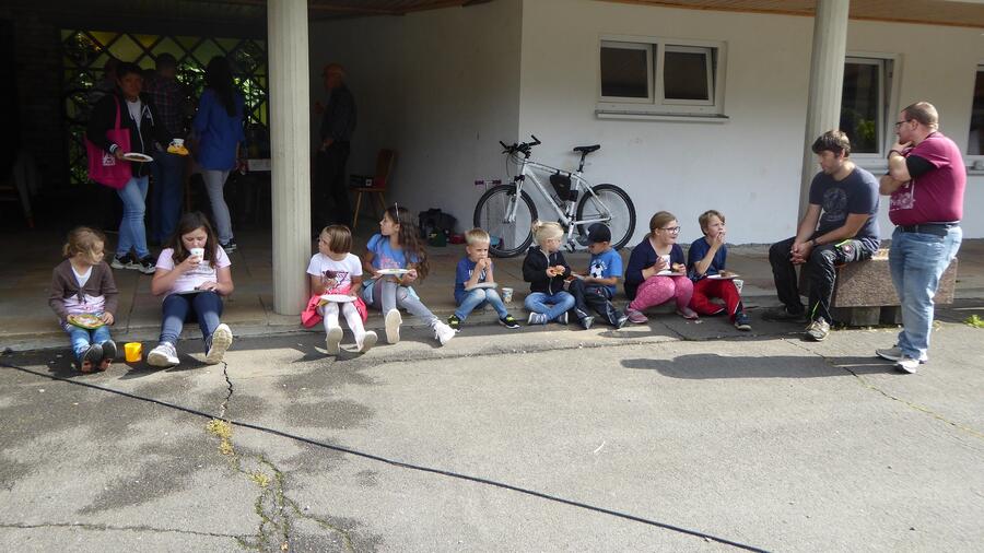 Das eifrige Arbeiten machte natürlich auch hungrig. In einer Mittagspause ließen sich die Kinder, und natürlich auch die Betreuer, erst einmal die von einigen Müttern vorbereiteten Waffeln, Kuchen und anderes Gebäck schmecken.