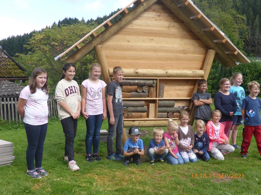 Alles in Allem war es ein schöner Tag! Den Kindern hat es sichtlich Spaß gemacht. Sie und auch ihre Betreuer konnten viel über Wildbienen lernen. Da sie zu den bedrohten Tierarten gehören ist es auch wichtig, sie zu schützen und durch geeignete Nisthilfen den Fortbestand zu sichern. Da noch erst knapp die Hälfte des Wildbienenhotels gefüllt ist, wird es sicher zu einem späteren Zeitpunkt eine Fortsetzung dieses Workshops geben. Zudem wird eine hinter dem Wildbienenhotel gelegene Wiese in eine Wildblumenwiese für die Bienen umgewandelt und neben dem Wildbienenhotel eine Infotafel aufgestellt.