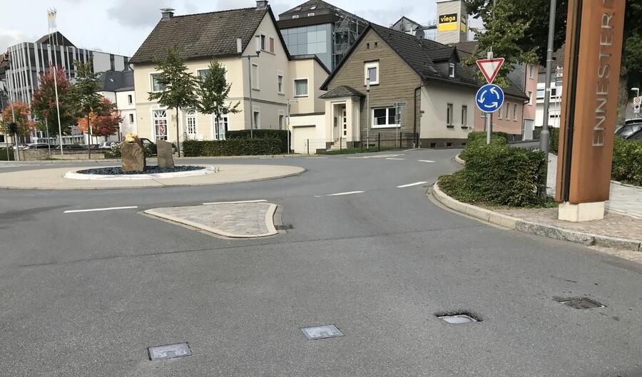Die vier Metallplatten, die auf der Ennester Straße den Verlauf der mittelalterlichen Stadtmauer verdeutlichen sollen, müssen aus der Fahrbahn entfernt werden.