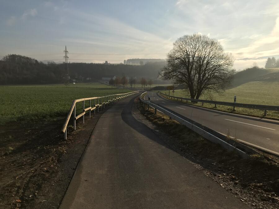 Ab sofort kann der neue straßenbegleitende Radweg von Radfahrern und auch von Fußgängern benutzt werden. Besonders den bergauf fahrenden Radfahrerinnen und Radfahrern werden nun die Touren erleichtert.