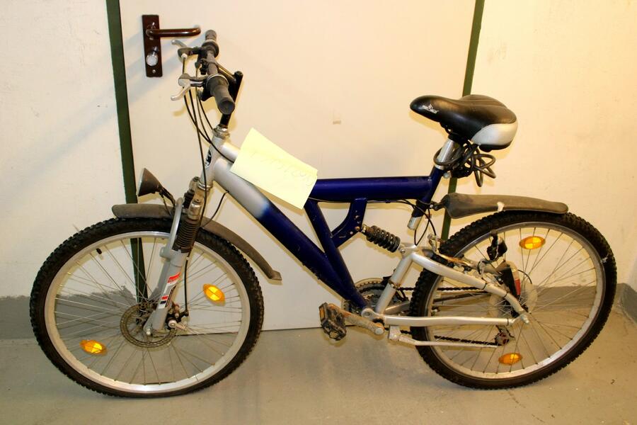 Beschreibung: Kinder Mountain-Bike Marke "Prophete" in grau/blau. Einige Gebrauchsspuren und Rostflecken. Reifen vorne platt.