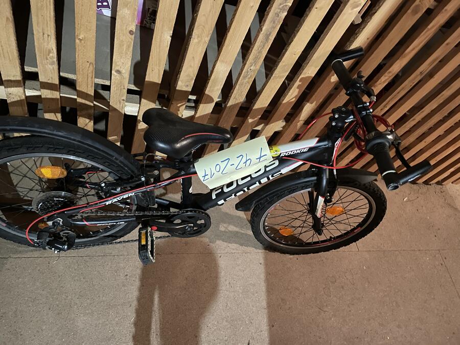 Beschreibung: Kinderfahrrad Marke "Fokus" Rookie in schwarz/weiß mit BVB-Aufkleber. Sehr guter Zustand.