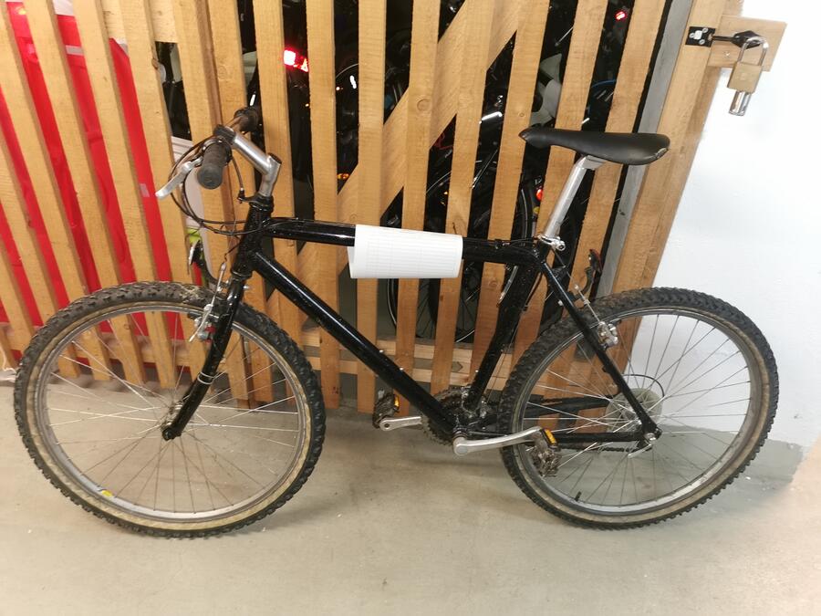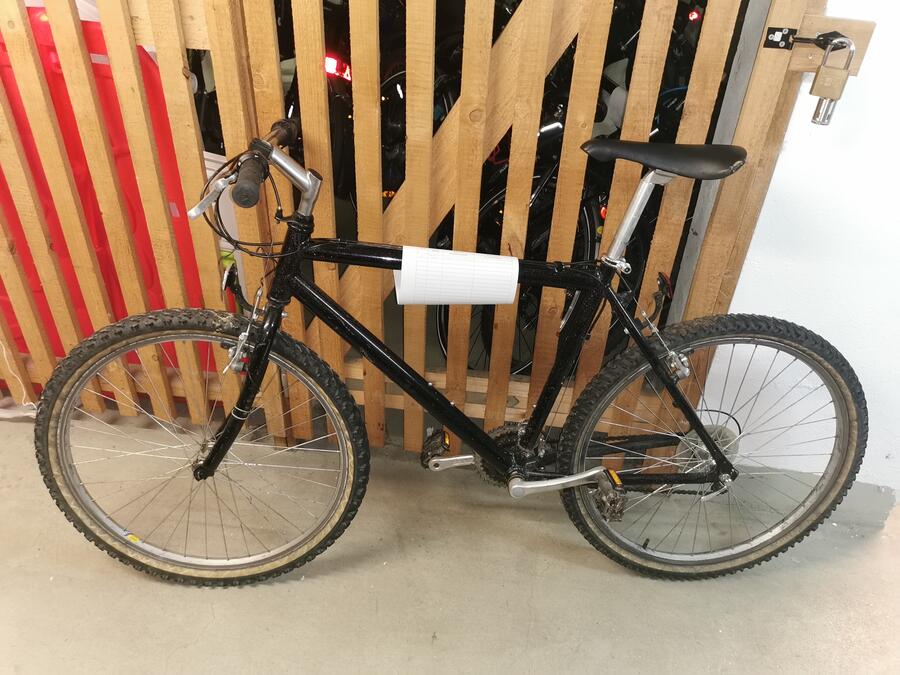 Beschreibung: Mountainbike in der Farbe schwarz mit Glitzer. Starke Gebrauchsspuren.