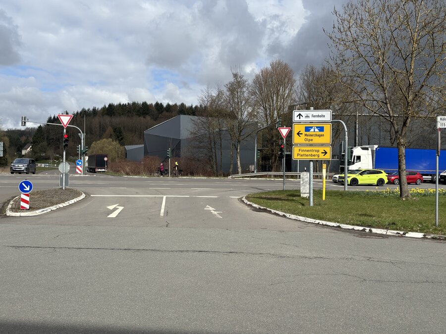 Der Verkehr aus Neu-Listernohl in Richtung Attendorn wird in Neu-Listernohl über die Ewiger Straße am "Forsthaus Ewig" vorbei durch die Unterführung bei der JVA Attendorn nach links zur (während der Umleitungsphase ausgeschalteten) Ampelanlage am Automotive Center (ACS) geführt. Von dort geht es rechts weiter nach Attendorn.