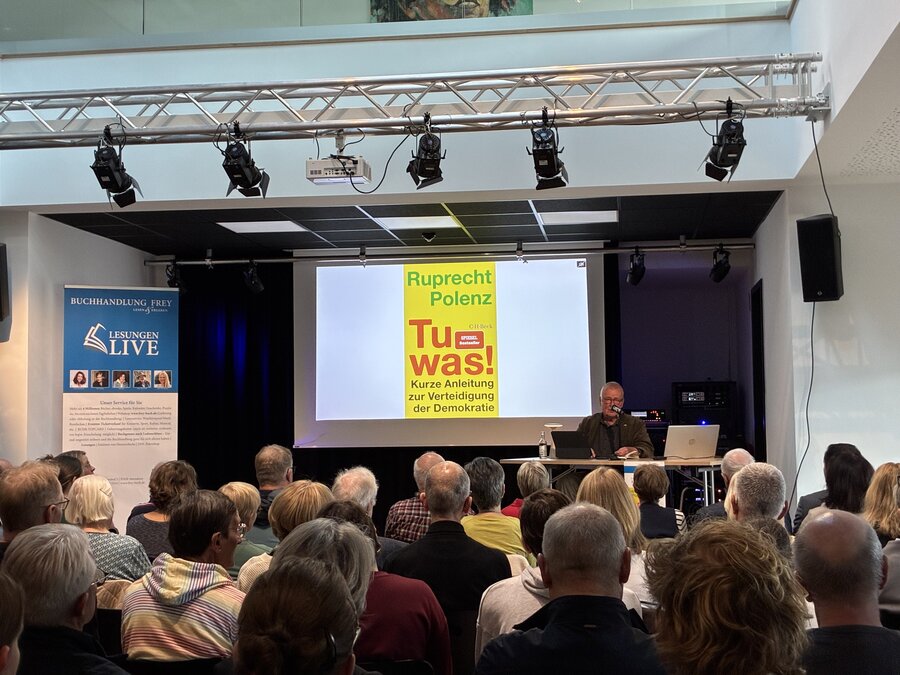 Auf Einladung der Buchhandlung Frey und in Zusammenarbeit mit dem Arbeitskreis "Demokratennest Attendorn" sprach Polenz im ausverkauften Bürgerhaus "Alter Bahnhof" vor mehr als 100 Gästen. Seine Lesung und der anschließende Vortrag basierten auf seinem Buch "Tu was! – Kurze Anleitung zur Verteidigung der Demokratie" und lieferten konkrete Impulse für demokratisches Engagement im Alltag.