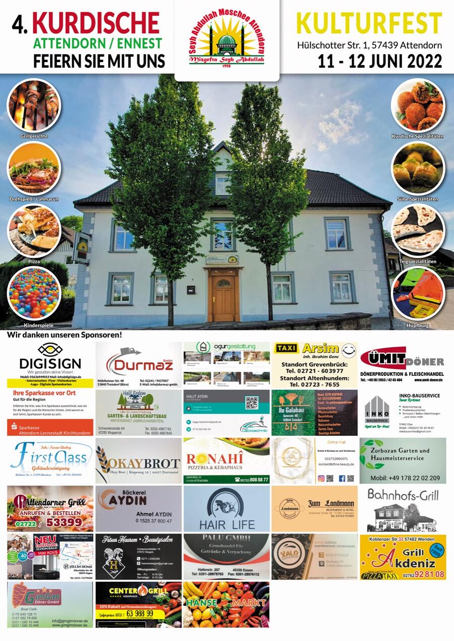 Die Kurdische Gemeinde Attendorn lädt am 11. und 12. Juni 2022 zum Kulturfest nach Ennest ein.