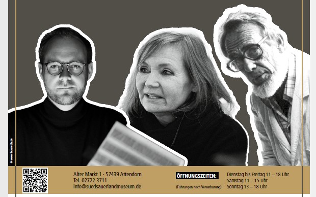 Bei der Vernissage am Sonntag, 22. Januar 2023, bietet Museumsleiterin Monika Löcken eine Einführung. Beate Hermann vom Künstlerbund Südsauerland erläutert das Wirken und Werken der drei Kunstschaffenden. Die musikalische Begleitung übernimmt Jan Backhaus.
