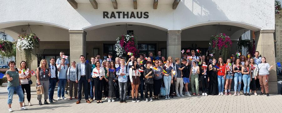 Bürgermeister Christian Pospischil begrüßte rund 50 Jugendliche aus sechs Nationen im Rathaus