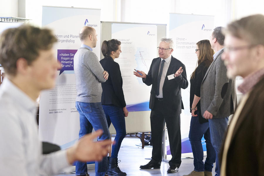 Die Amprion GmbH informiert über Trassenverlauf, Genehmigungsverfahren, Umwelt- und Naturschutz sowie elektrische und magnetische Felder. An mehreren Informationsständen stehen Mitarbeiter der Amprion GmbH für einen Dialog mit den Bürgerinnen und Bürgern zur Verfügung.