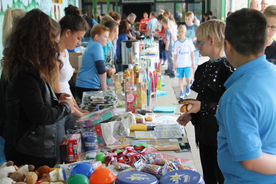 Auf dem Gelände erwarten einen verschiedene Ausstellungen, wie z.B. von der Waldschule oder der Schülerfirma, zahlreiche sportliche Aktivitäten wie Bogenschießen, Kistenklettern, Bobbycar-Rennen, Tischtennis und sogar eine Kartbahn. Ein besonderes sportliches Highlight stellt der Lebendkicker dar. Die eigene Geschicklichkeit kann man beim Basteln oder Sägen sowie bei Stechmeißelarbeiten und am Nagelbalken unter Beweis stellen. Das Jugendzentrum ist mit dem Spielmobil vertreten. Garniert ist der Tag mit zahlreichen Aufführungen in der Mensa. Sein Losglück kann man an der großen Tombola herausfordern und vielleicht einen oder sogar mehrere der tollen Gewinne mit nach Hause nehmen! Der Förderverein bietet mit Unterstützung aller Eltern wieder eine Vielfalt an tollen Leckereien an. Dazu gehören herzhafte Würstchen vom Grill und Champignons. Wer es lieber süßer mag, der findet unter vielen verschiedenen Kuchen und Gebäcken sicherlich sein Lieblingsstück.