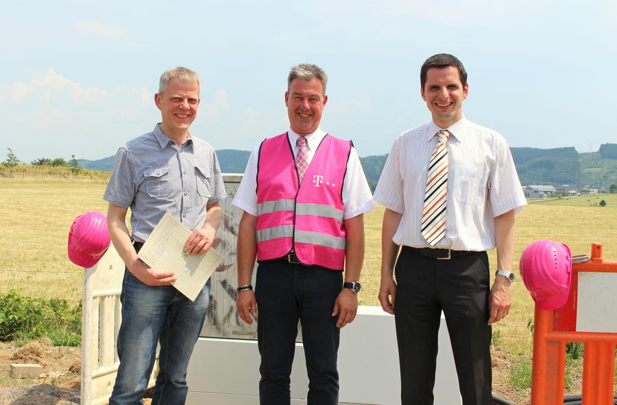 Der Glasfaser-Ausbau der Telekom im Vorwahlbereich 02722 in Attendorn läuft auf Hochtouren. Davon haben sich jetzt Bürgermeister Christian Pospischil und Christof Schneider von der Wirtschaftsförderung der Hansestadt Attendorn vor Ort überzeugt.