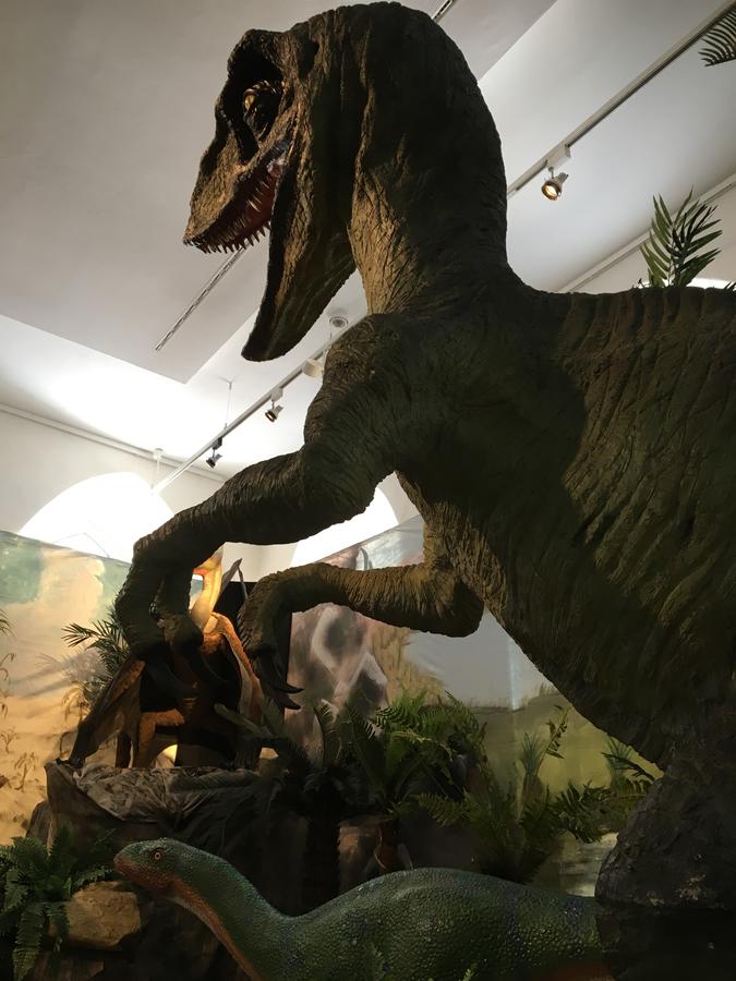 "Der Planet Erde ist etwa 4,6 Milliarden Jahre alt. Erst vor etwa 380 Millionen Jahren kamen die frühen Wirbeltiere an Land. Besucher können eine Abenteuerreise durch die Erdgeschichte, Auge in Auge mit den beeindruckenden, längst ausgestorbenen Tieren, machen. Die vielseitige Ausstellung führt durch Krisen und Katastrophen der Erdgeschichte und stellt typische Lebewesen der drei großen Erdzeitalter vor.