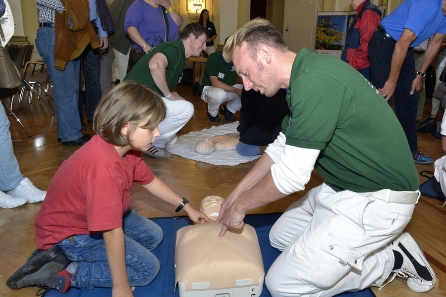 Dass das Herz plötzlich aussetzt, kann jedem Menschen passieren. Ob beim Sport, beim Feiern oder einfach mitten auf der Straße, immer wieder fallen Menschen in eine Bewusstlosigkeit durch Herzstillstand und dann ist es eine Frage des beherzten Eingreifens von Passanten, ob der Patient die kritischen Minuten bis zum Eintreffen der Rettungskräfte überlebt oder nicht. Jeder sollte daher die einfache Technik kennen, die man zur Wiederbelebung eines Menschen braucht. Denn Helfen ist einfach und ein gerettetes Menschenleben ist unbezahlbar.