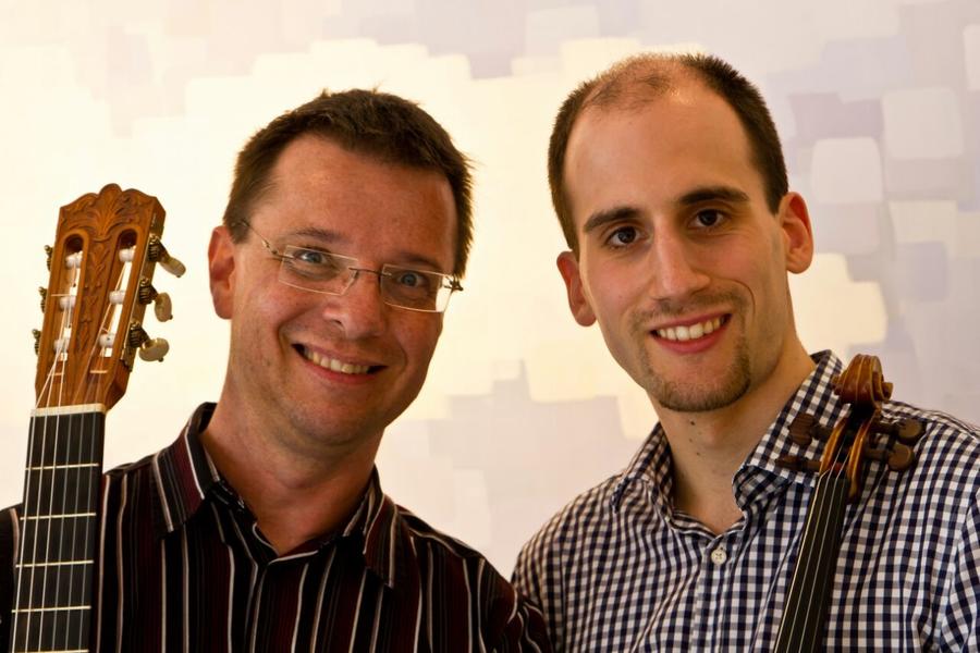 Zu Gast sind der Gitarrist Thomas Hofer und der Geiger Daniel Dangendorf. Die beiden Künstler musizieren seit mehreren Jahren in dieser eher seltenen Duo- Besetzung und begeistern ihr Publikum durch ihre äußerst facettenreiche Interpretation der unterschiedlichsten Musikstücke. Thomas Hofer ist bekannt als Dozent an der hiesigen Musikschule sowie als Solist und Kammermusiker in verschiedenen Formationen, sein Duo- Partner ist nach mehreren Orchester- Engagements in Köln, Bonn, Duisburg und Wuppertal seit der Saison 2017/2018 Mitglied der 1. Violinen des Gürzenich- Orchesters.