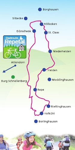 Die Hansestadt Attendorn hat mit der „Radroute Repetal“ ihren ersten Radrundweg fertiggestellt. Diese gut 20 Kilometer lange Strecke wurde mit einem bunten Kinder- und Familienfest am Samstag, 23. Juni 2012, ab 14 Uhr rund um das Dorfgemeinschaftshaus in Repe eröffnet.