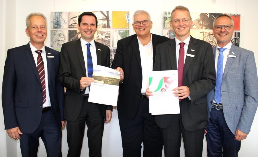 Im Zuge seines Besuchs der Hansestadt Attendorn konnte Regierungspräsident Hans-Josef Vogel zwei Förderbescheide aus der Städtebauförderung an Bürgermeister Christian Pospischil überreichen.